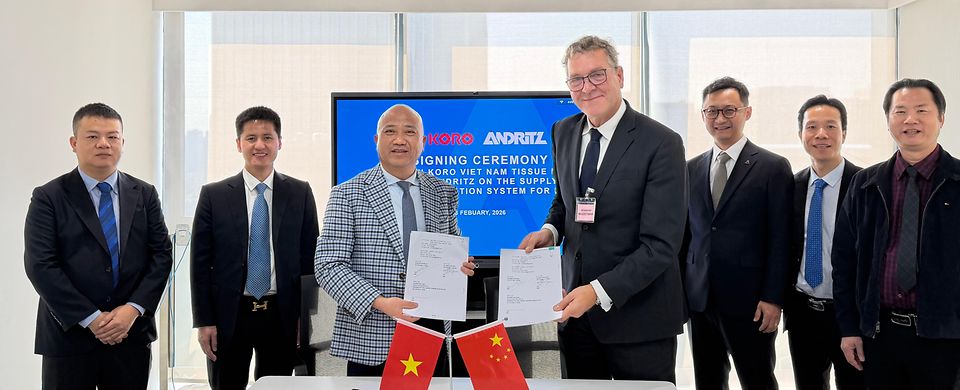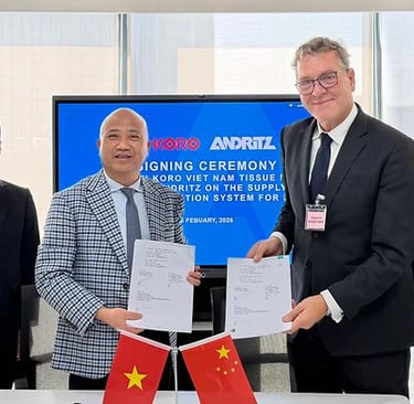 This order continues nearly two decades of cooperation with Mr. Ngo Huu Phuong, Chairman of Koro Viet Nam Tissue Paper. ANDRITZ most recently supplied a 500 t/d OCC/PMA line for Koro’s PM2 packaging paper line in July 2025.