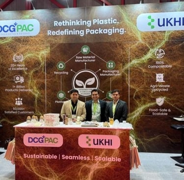 Through its partnership with UKHI and its Noida-based manufacturing facility, DCGpac offers an end-to-end ecosystem spanning raw materials, compostable packaging production, global logistics, local fulfilment, AI-driven supply chain solutions, and recycling.