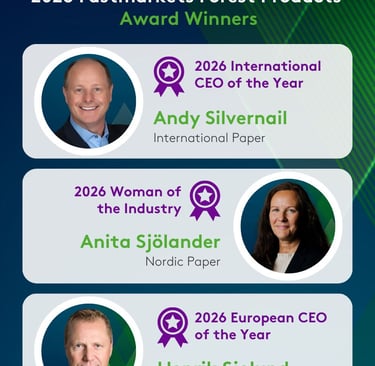 Fastmarkets announced its 2026 Forest Products industry awards, recognizing three executives for outstanding leadership amid challenging market conditions. Andy Silvernail, CEO of International Paper, received the International CEO of the Year award. Selected by investment analysts and portfolio managers, Silvernail earned recognition for accelerating International Paper's transformation after completing the DS Smith acquisition. The company advanced regulatory actions to optimize its European operations, including exclusive negotiations to sell five corrugated box plants while implementing strategic changes to enhance service and cost efficiency.