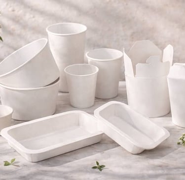 Typical applications include bowls for salads and ice cream, trays for fries and snacks, and packaging for ready-to-eat meals. EraCup Natural provides an effective alternative to traditional PE-lined boards, enabling more sustainable packaging without compromising production efficiency or product protection for single use containers.