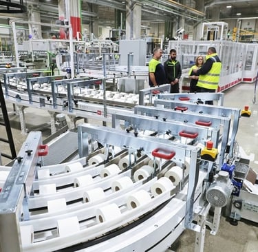 The new line significantly enhances the company’s capacity to produce finished tissue products through advanced automation and digitalized manufacturing processes. Operating at speeds of up to 700 meters per minute, the line can produce up to 600 pallets, or approximately 648,000 rolls of toilet paper per day. The technology also improves energy efficiency, helping reduce the facility’s carbon footprint.