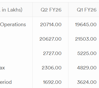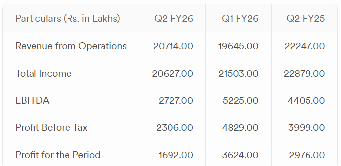 The company's revenue from operations for Q2 FY26 stood at Rs. 20,714.00 lakhs, showing a 5.44% increase from the previous quarter but a 6.89% decrease compared to the same quarter last year.