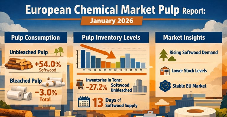 These trends indicate that the European pulp market remains stable but is experiencing changing demand patterns between pulp types, which could influence production strategies and supply chain planning in the coming months.