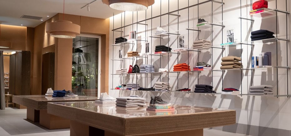 Ecoalf specialises in turning materials such as plastic bottles, rejected industrial cotton and discarded fishing nets into clothing. The brand tasked Smurfit Westrock, which also has circularity at its core, to create a permanent retail store as inherently sustainable as the products on sale.