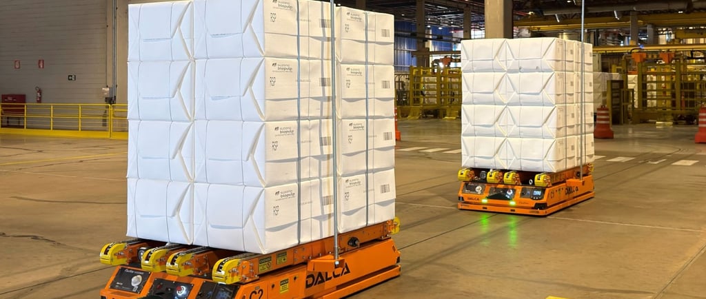 Suzano, a pulp producer, has started using autonomous robots to move bales of pulp at its plant located in the city of Ribas do Rio Pardo, in Mato Grosso do Sul. The initiative is considered pioneering in the sector for applying Autonomous Mobile Robot (AMR) technology on a large scale to pulp storage.