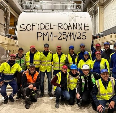 Toscotec is pleased to announce the successful start-up of the PM1 tissue line at Sofidel Roanne’s mill in France. This move follows a major rebuild of the tissue machine, a modernization project designed to meet one of the Sofidel's key objectives, energy savings. These efforts support the company’s long-term decarbonization and sustainability goals.