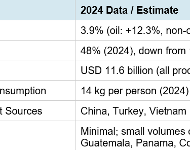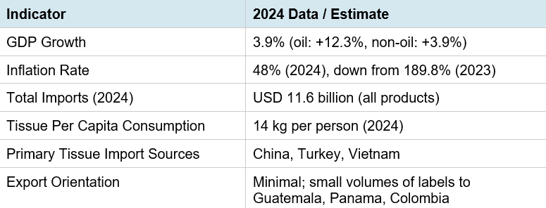 Tissue Paper Imports: China is the dominant supplier (exact volume data proprietary), followed by Turkey and Vietnam. Import volumes contracted in 2024 versus 2023, potentially reflecting either demand softness or currency/payment constraints.